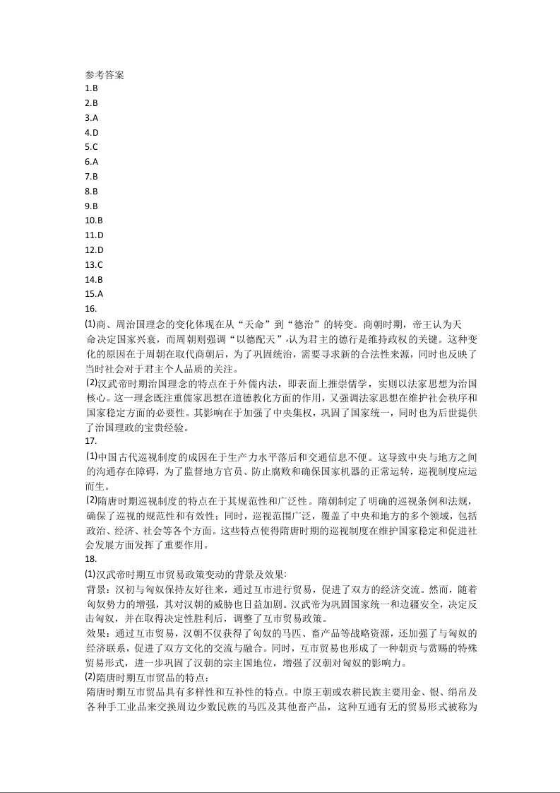 华中师大一附中2024-2025学年度十月月度检测 历史答案