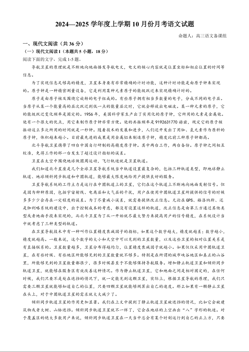 沈阳市重点学校高三上学期10月月考 语文