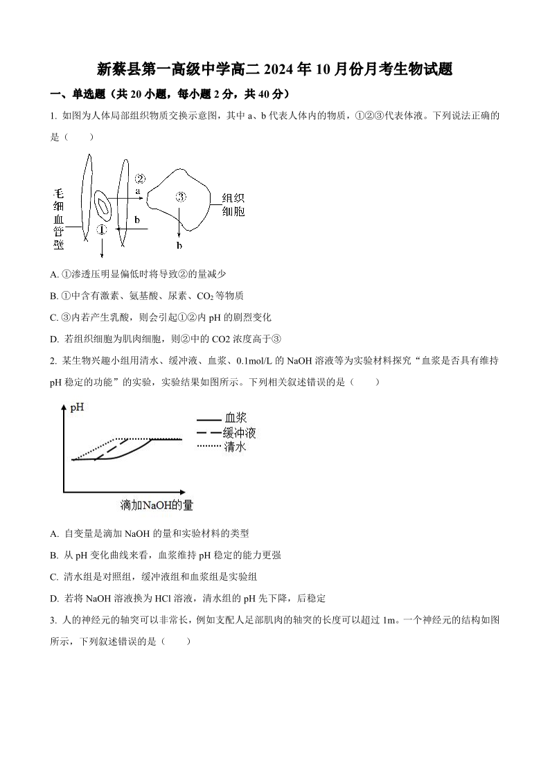 新蔡县第一高级中学高二2024年10月份月考 生物