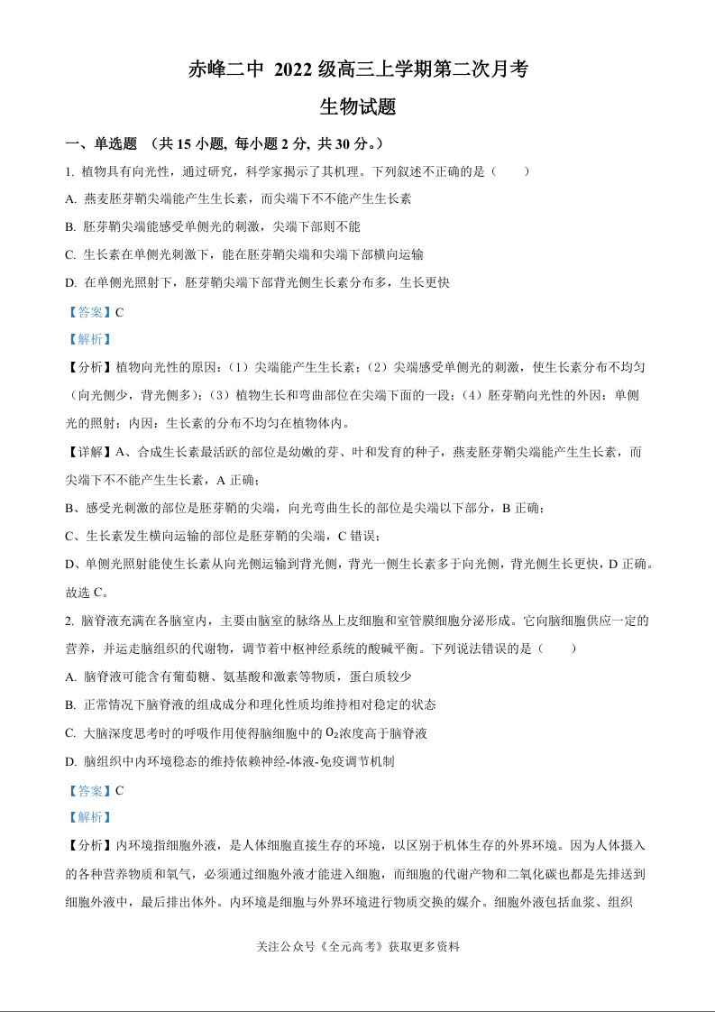 内蒙古赤峰二中2024-2025学年高三上学期第二次月考 生物答案