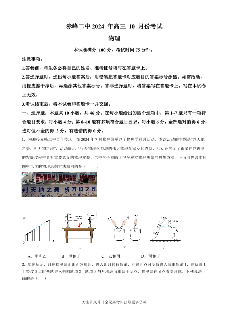 内蒙古赤峰二中2024-2025学年高三上学期第二次月考 物理