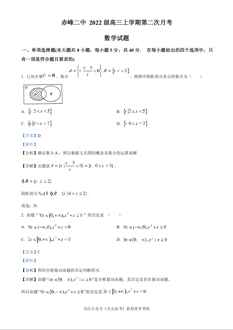 内蒙古赤峰二中2024-2025学年高三上学期第二次月考 数学答案
