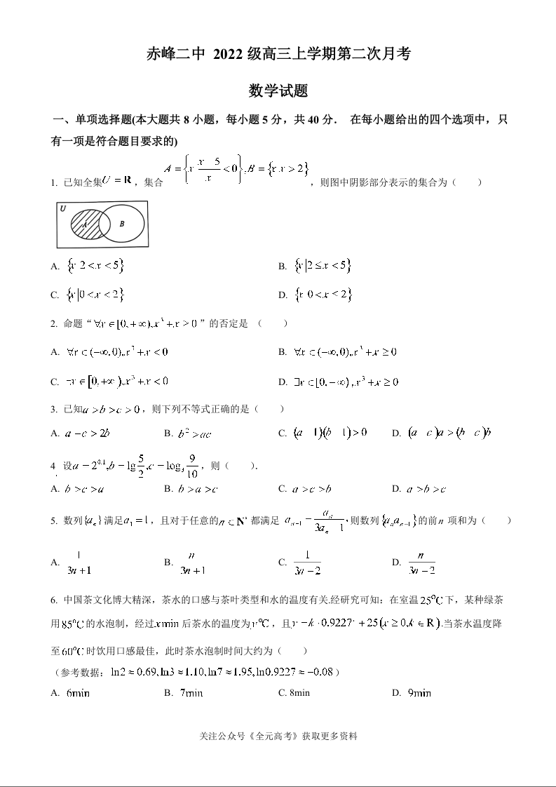 内蒙古赤峰二中2024-2025学年高三上学期第二次月考 数学