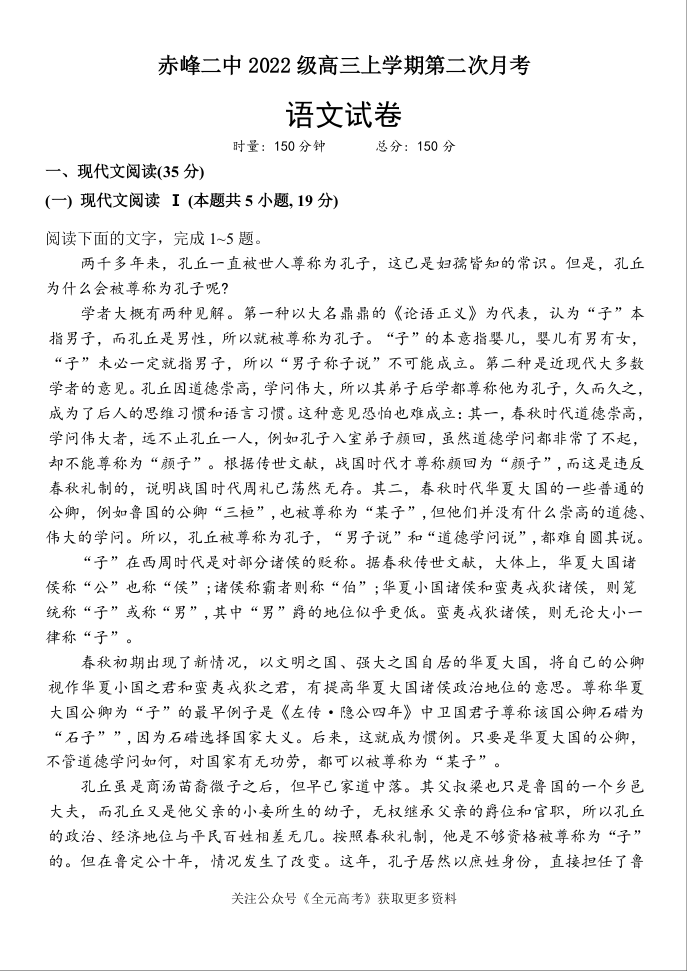 内蒙古赤峰二中2024-2025学年高三上学期第二次月考 语文