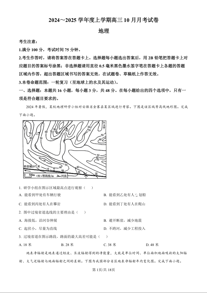 黑龙江省绥化市绥棱县第一中学2024-2025学年高三上学期10月月考 地理