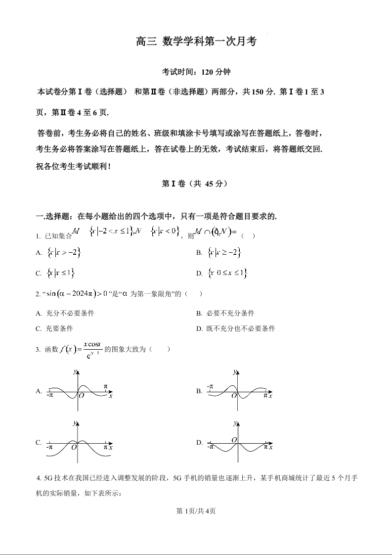 天津市南开中学2025届高三上学期第一次月考 数学