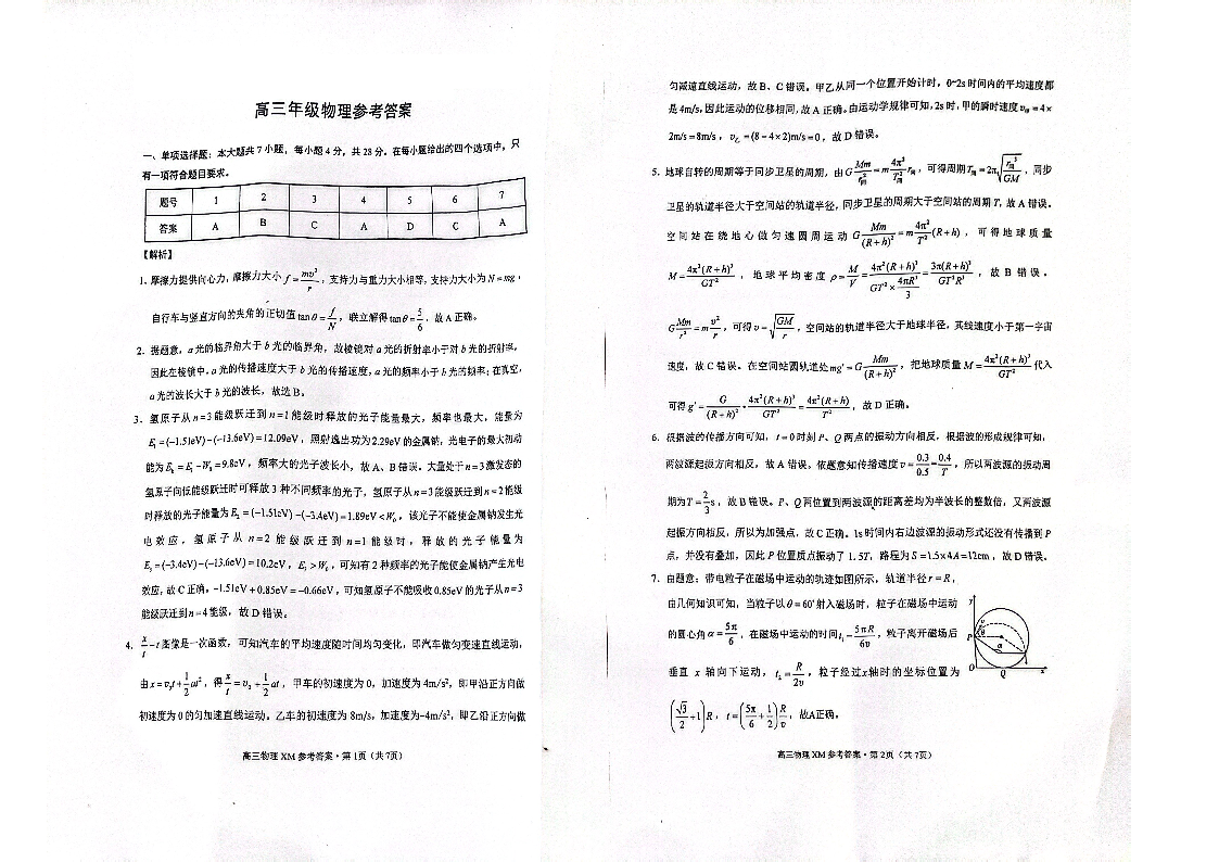 大理白族自治州宾川县高平第一完全中学2025届高三上学期期中考试 物理答案