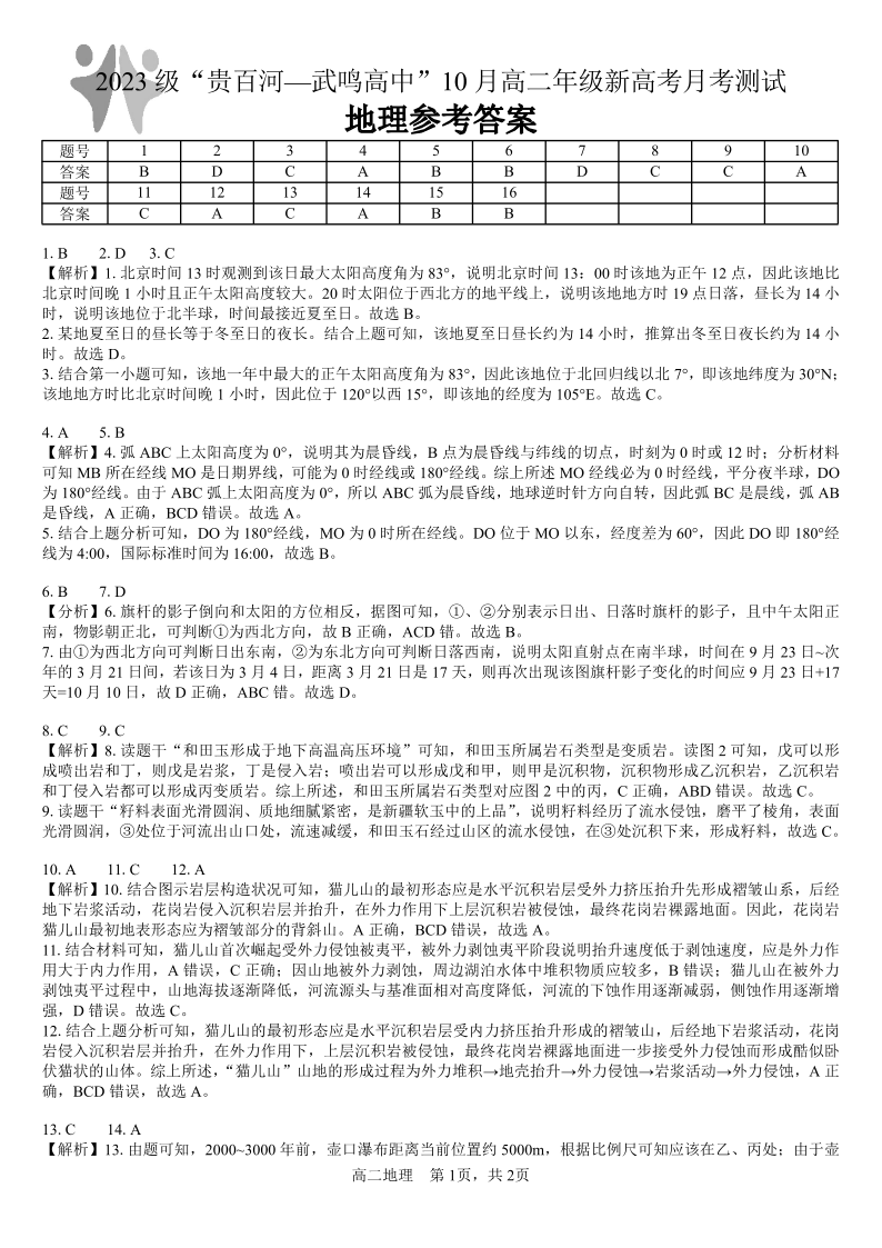 广西2023级“贵百河-武鸣高中”10月高二年级新高考月考测试 地理答案