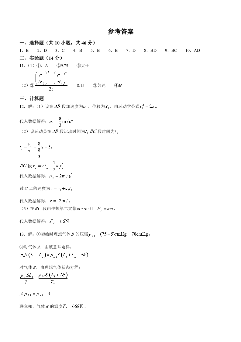 黑龙江省大庆外国语学校2024-2025学年高三上学期第一次教学质量检测 物理答案