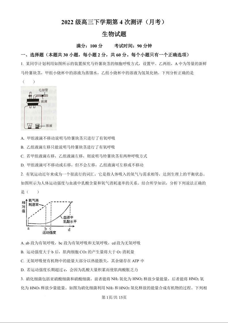 山东省聊城市第二中学2025届高三上学期第一次月考 生物