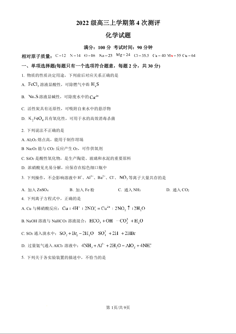 山东省聊城市第二中学2025届高三上学期第一次月考 化学