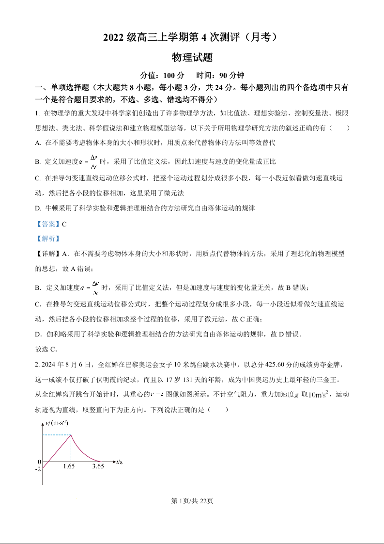山东省聊城市第二中学2025届高三上学期第一次月考 物理答案