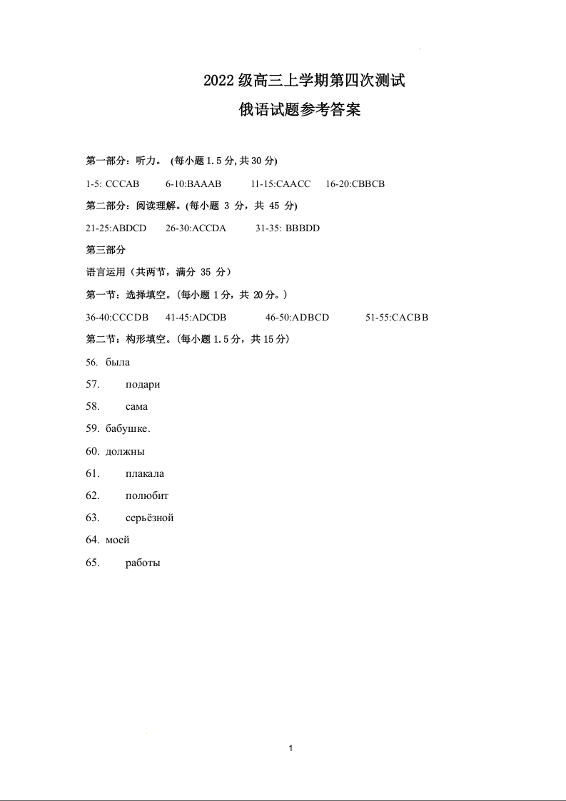 山东省聊城市第二中学2025届高三上学期第一次月考 俄语答案