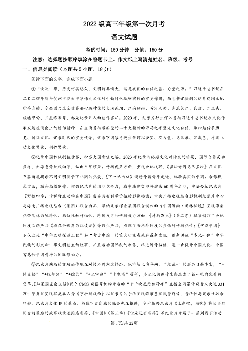 山东省聊城市第二中学2025届高三上学期第一次月考 语文答案