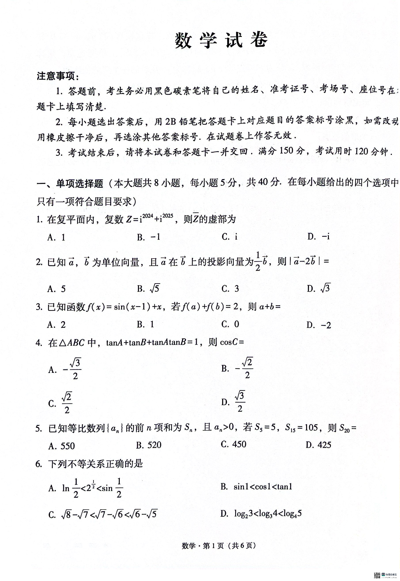 云南师范大学附属中学2025届高三高考适应性月考卷(四)数学