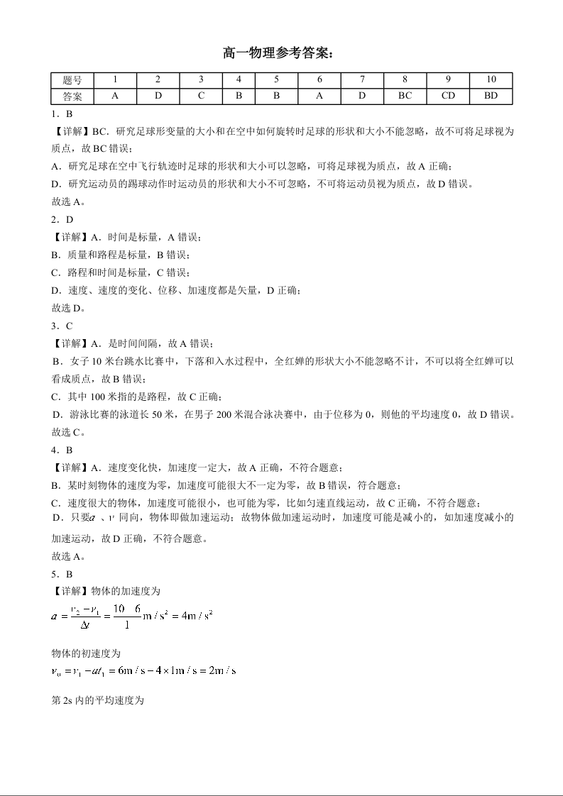 辽宁省辽东南协作体2024-2025学年高一上学期10月月考 物理答案