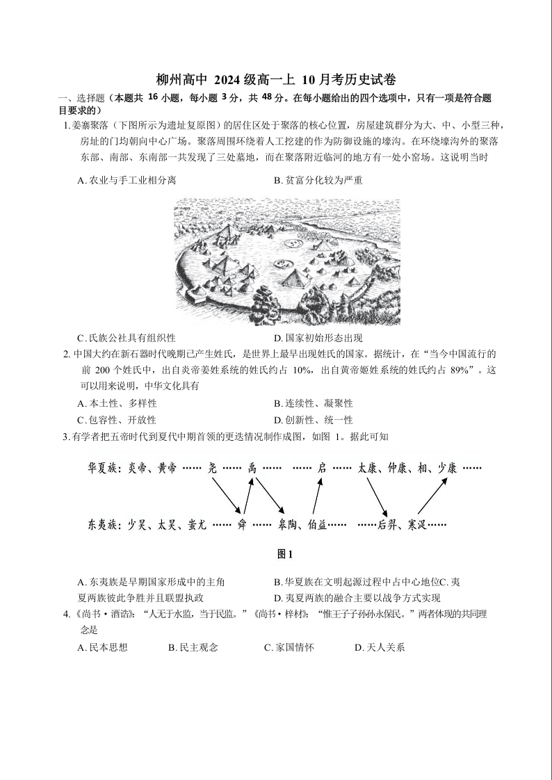 广西柳州高级高中2024-2025学年高一上学期10月月考 历史