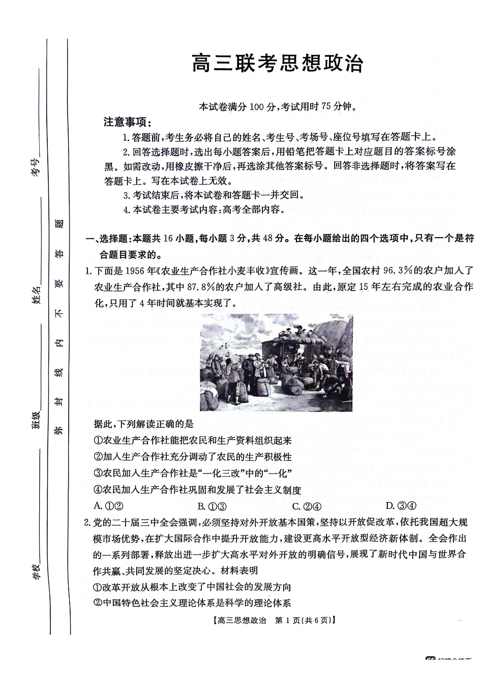 贵州省多校2025届高三10月联考 政治