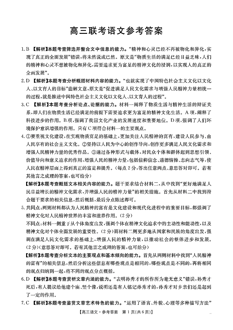 贵州省多校2025届高三10月联考 语文答案