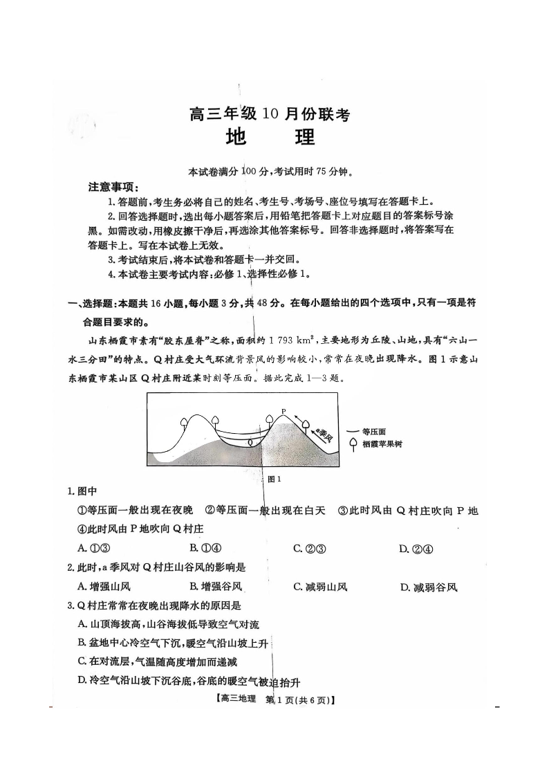 河北省邢台市邢襄联盟2025届高三10月联考 地理