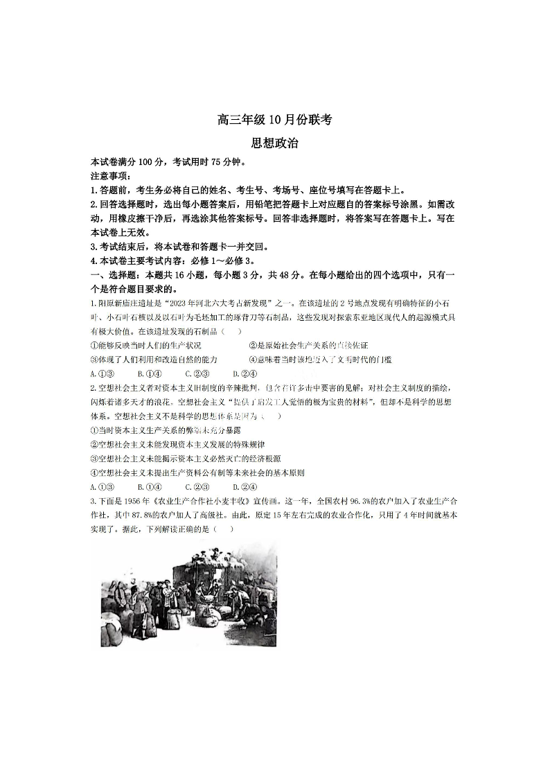 河北省邢台市邢襄联盟2025届高三10月联考 政治