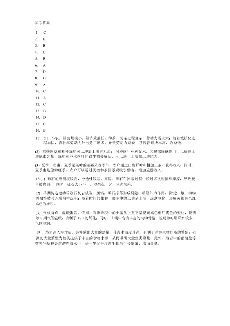 广东省江门市2025届高三上学期10月调研考试 地理答案