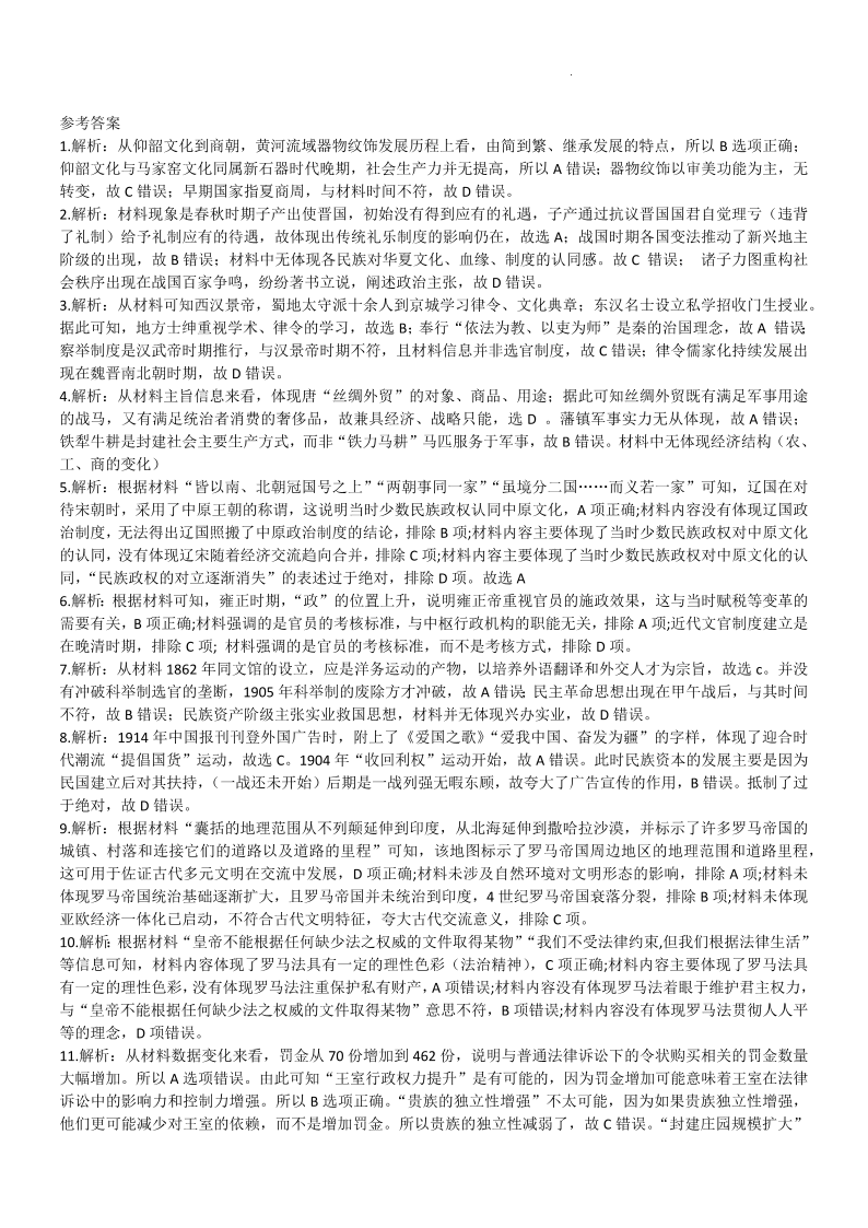 广东省江门市2025届高三上学期10月调研考试 历史答案