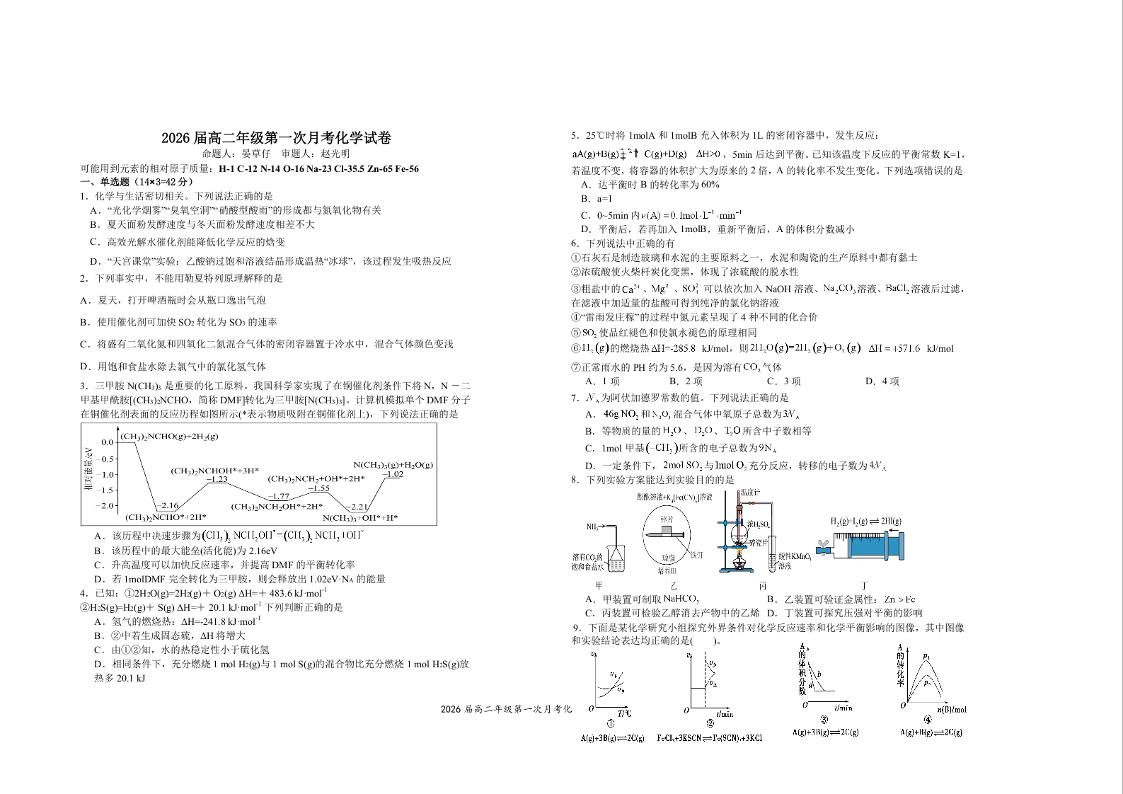 江西省宜春市上高二中2024-2025学年高二上学期第一次月考 化学