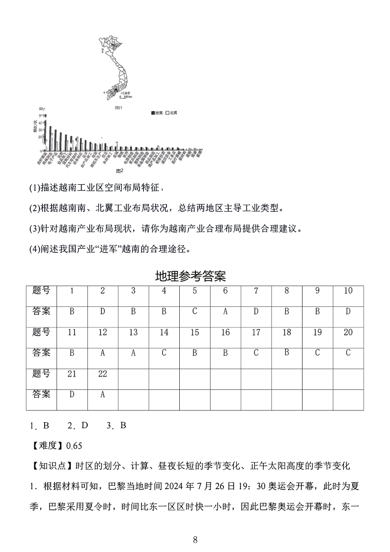江苏省2025届高三10月百校联考 地理答案