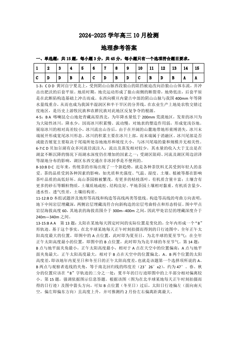 山东省中昇大联考2024-2025学年高三10月联考 地理答案