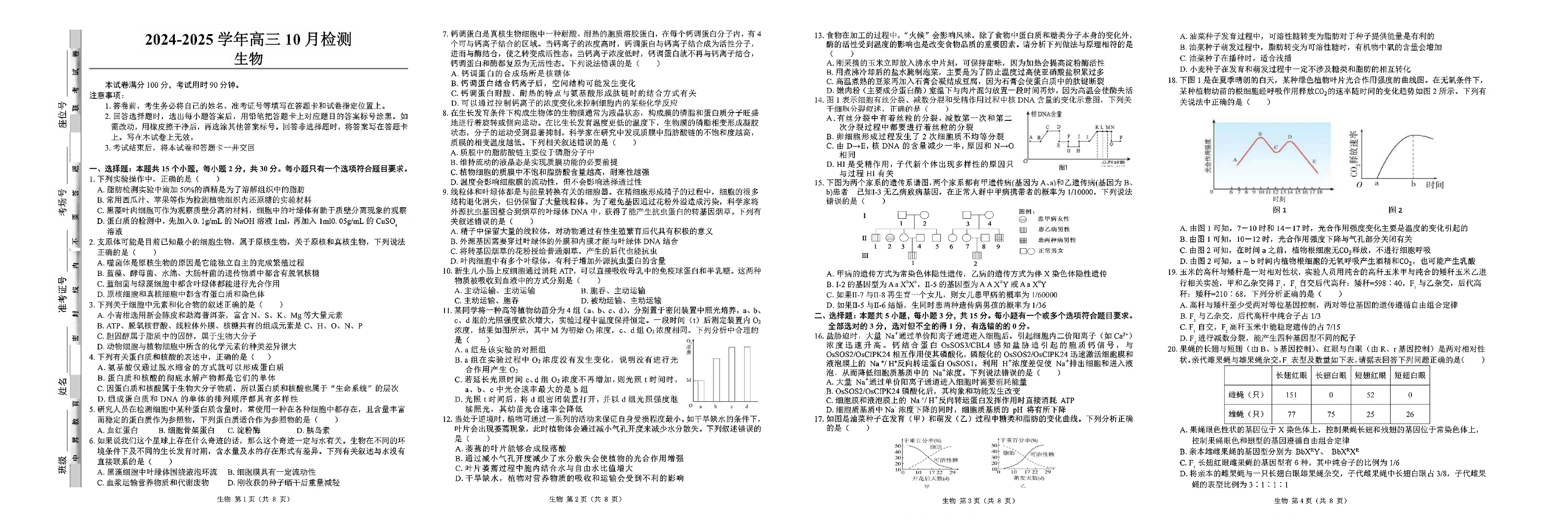 山东省中昇大联考2024-2025学年高三10月联考 生物