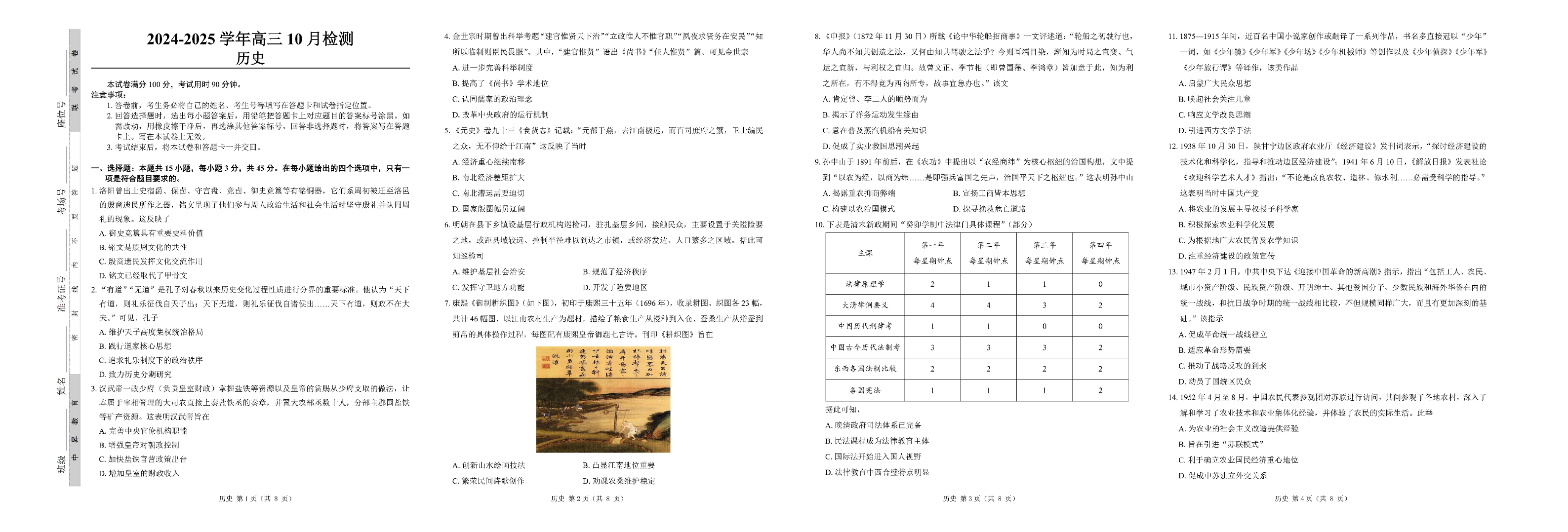 山东省中昇大联考2024-2025学年高三10月联考 历史
