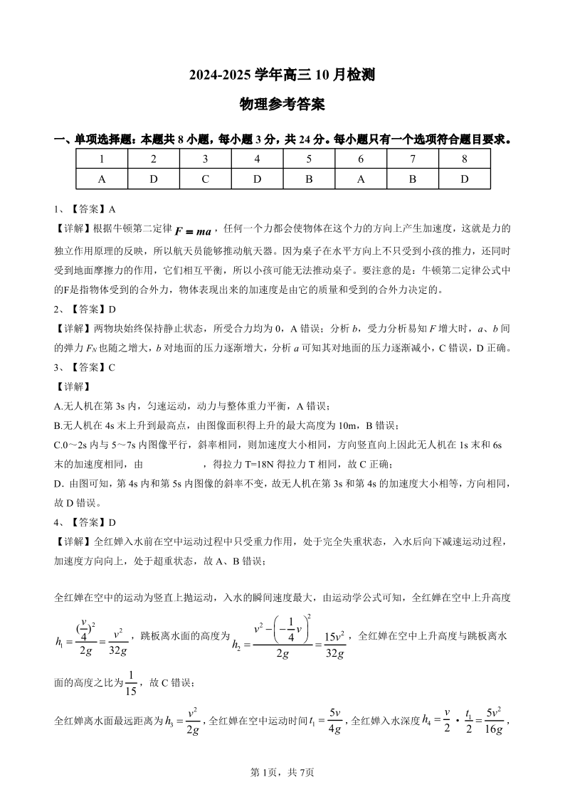 山东省中昇大联考2024-2025学年高三10月联考 物理答案