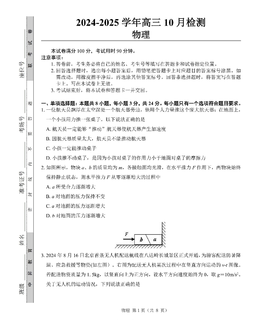 山东省中昇大联考2024-2025学年高三10月联考 物理