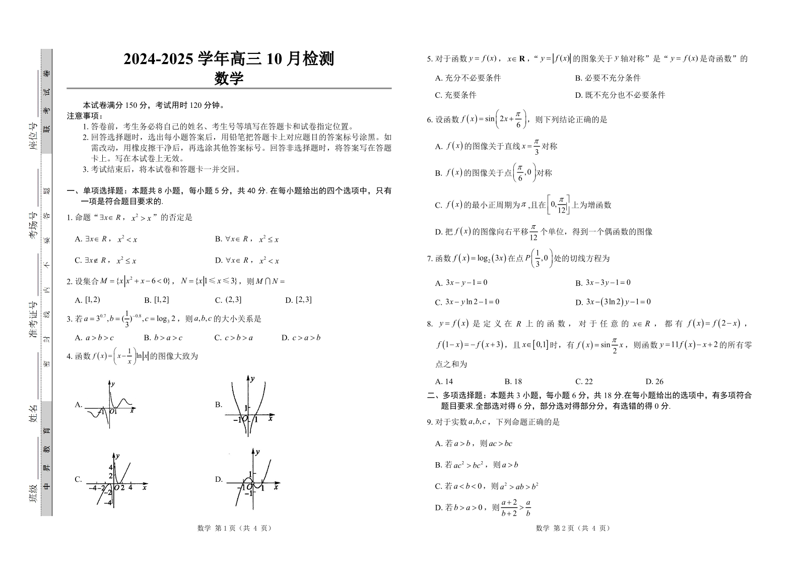 山东省中昇大联考2024-2025学年高三10月联考 数学