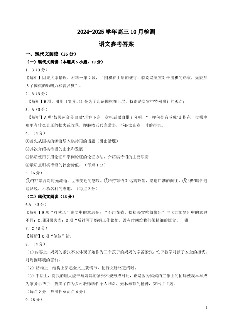 山东省中昇大联考2024-2025学年高三10月联考 语文答案
