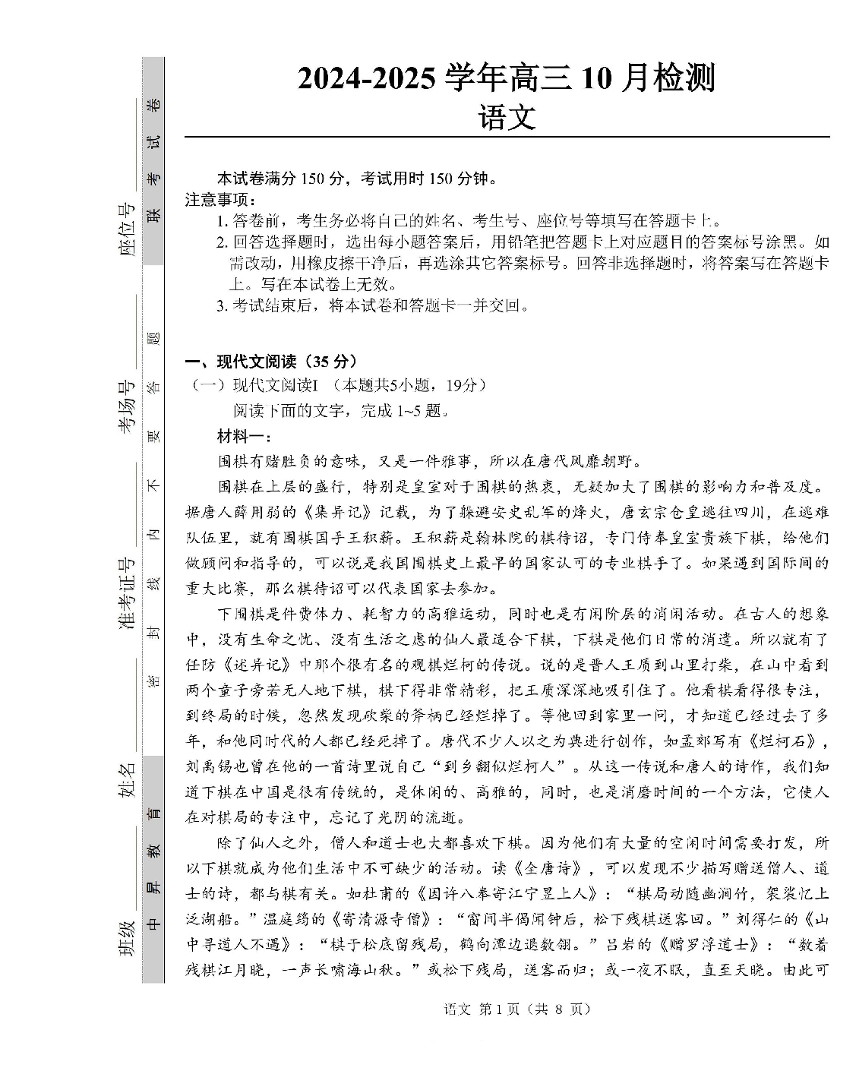 山东省中昇大联考2024-2025学年高三10月联考 语文