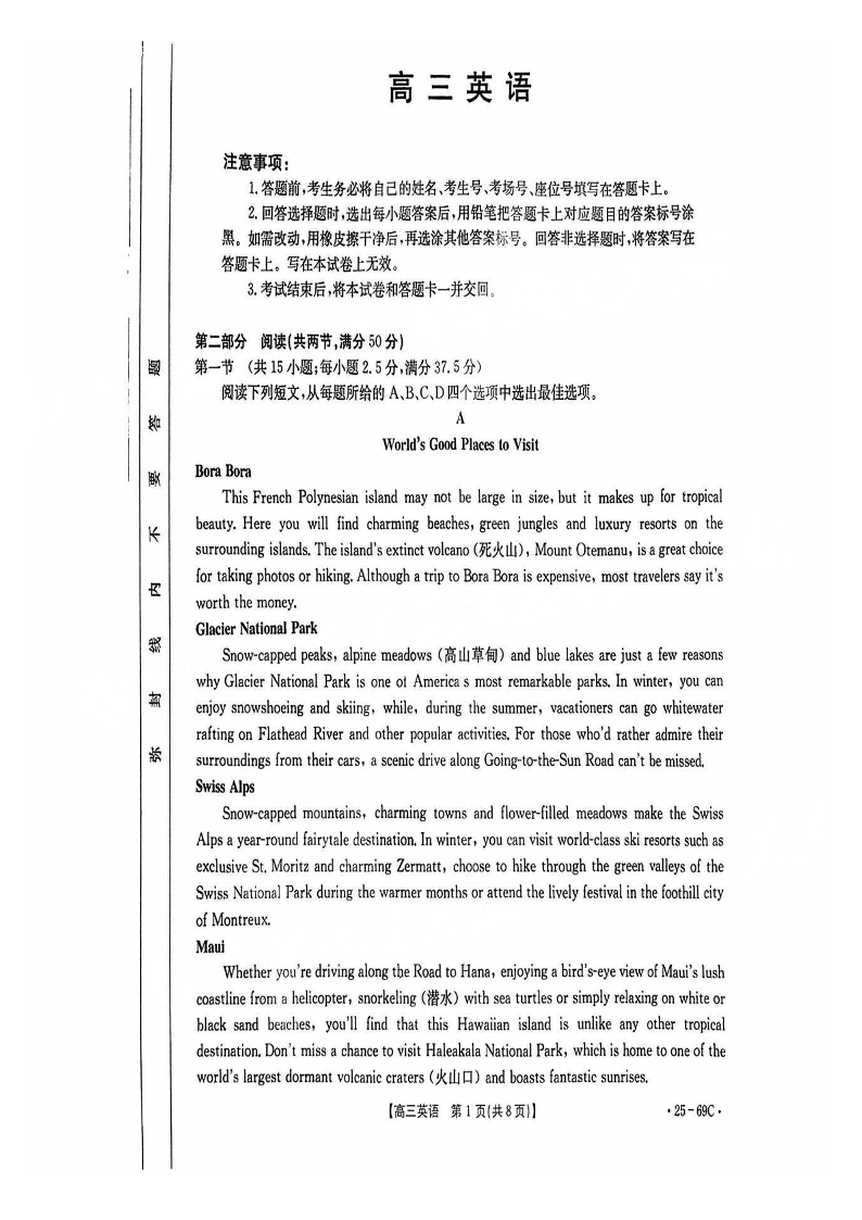 广东省部分学校2025届高三10月联考 英语