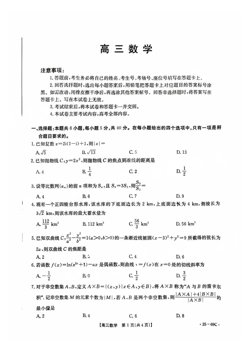 广东省部分学校2025届高三10月联考 数学