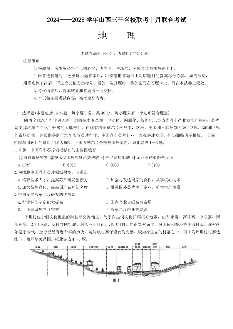 山西省三晋名校2024-2025学年高三上学期10月联考 地理