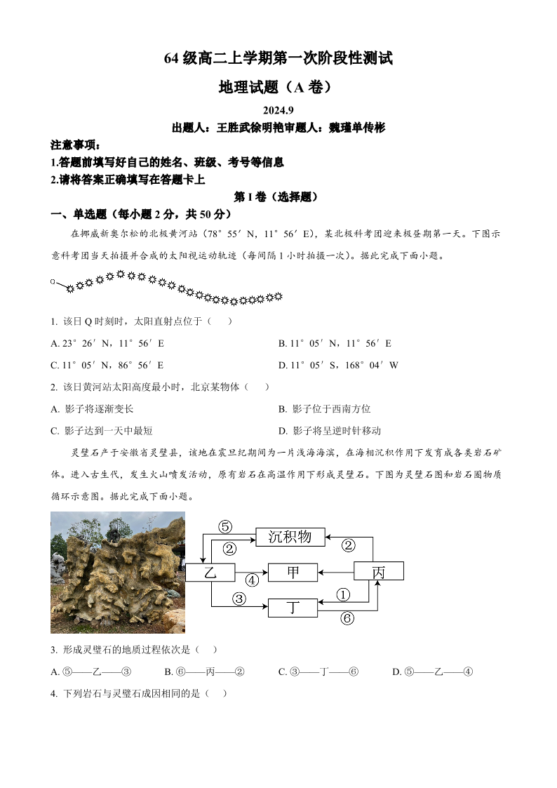 山东省济南市莱芜第一中学2024-2025学年高二上学期第一次阶段性测试 地理