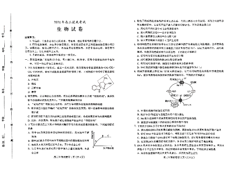 河北省保定市2025届高三摸底考试(保定一模)生物