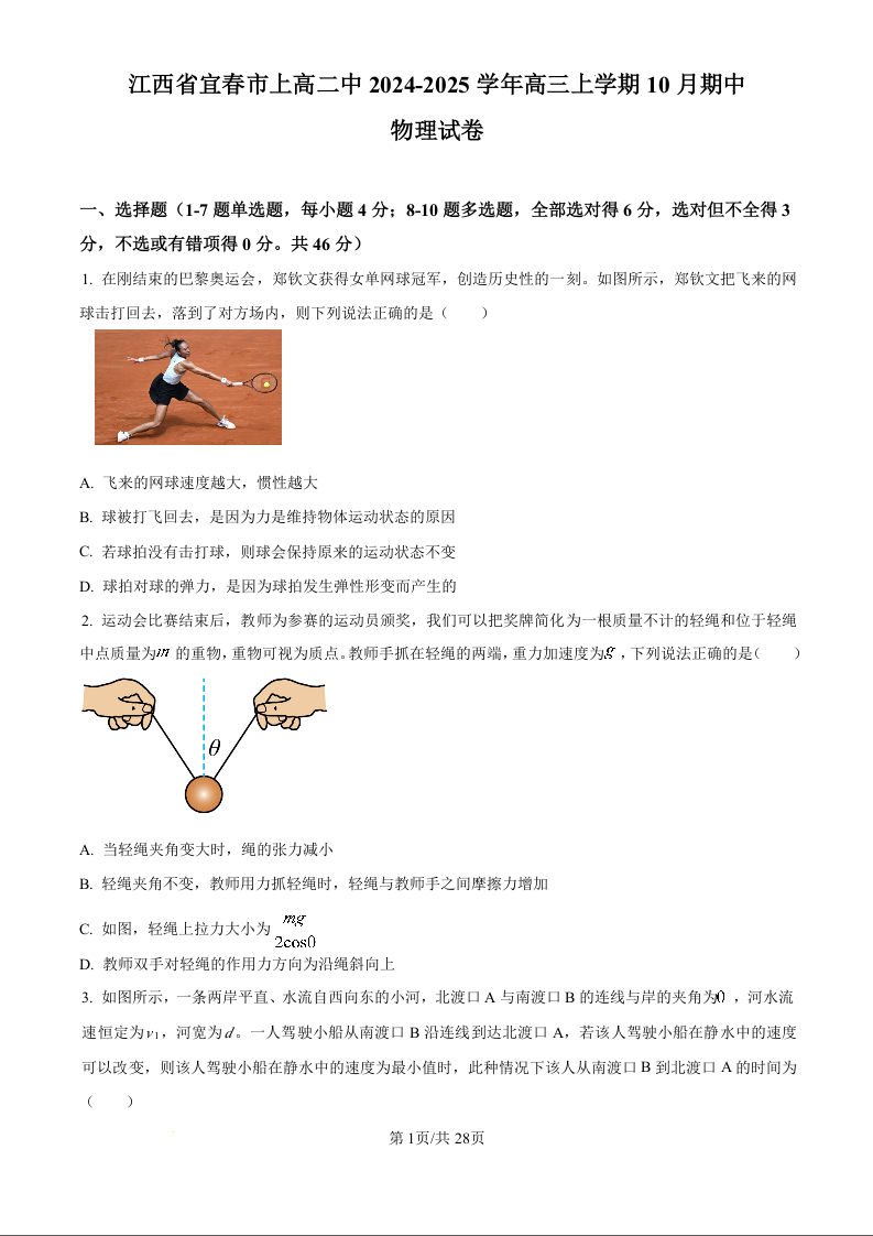 江西省宜春市上高二中2025届高三上学期10月期中考试 物理