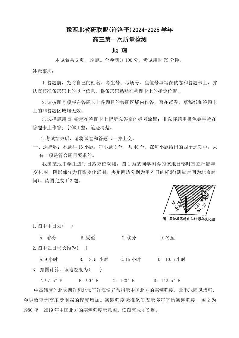 河南省豫西北教研联盟(许洛平)2025届高三上学期第一次质量检测 地理