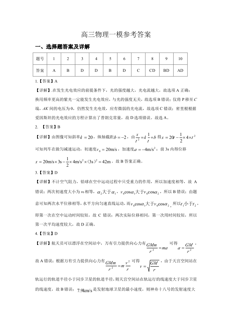河南省豫西北教研联盟(许洛平)2025届高三上学期第一次质量检测 物理答案