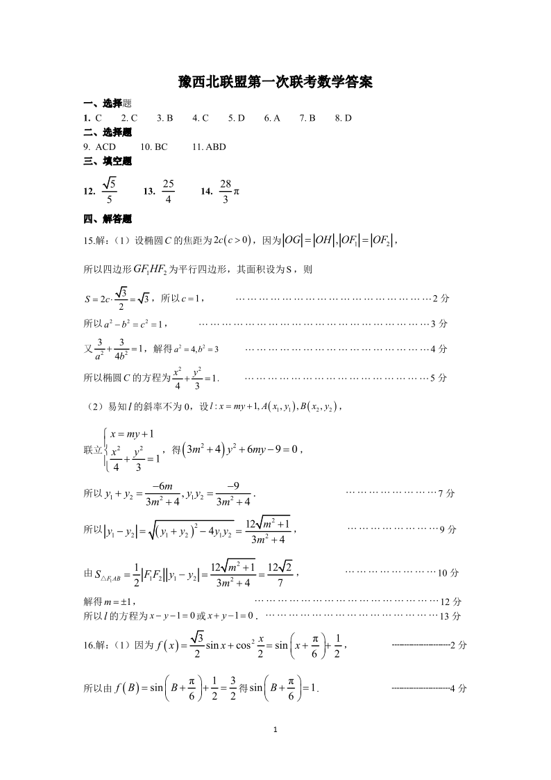 河南省豫西北教研联盟(许洛平)2025届高三上学期第一次质量检测 数学答案