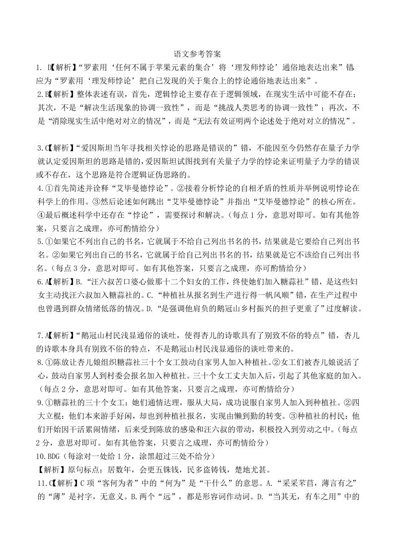 晋豫名校联盟2025届高三年级10月份联考 语文答案