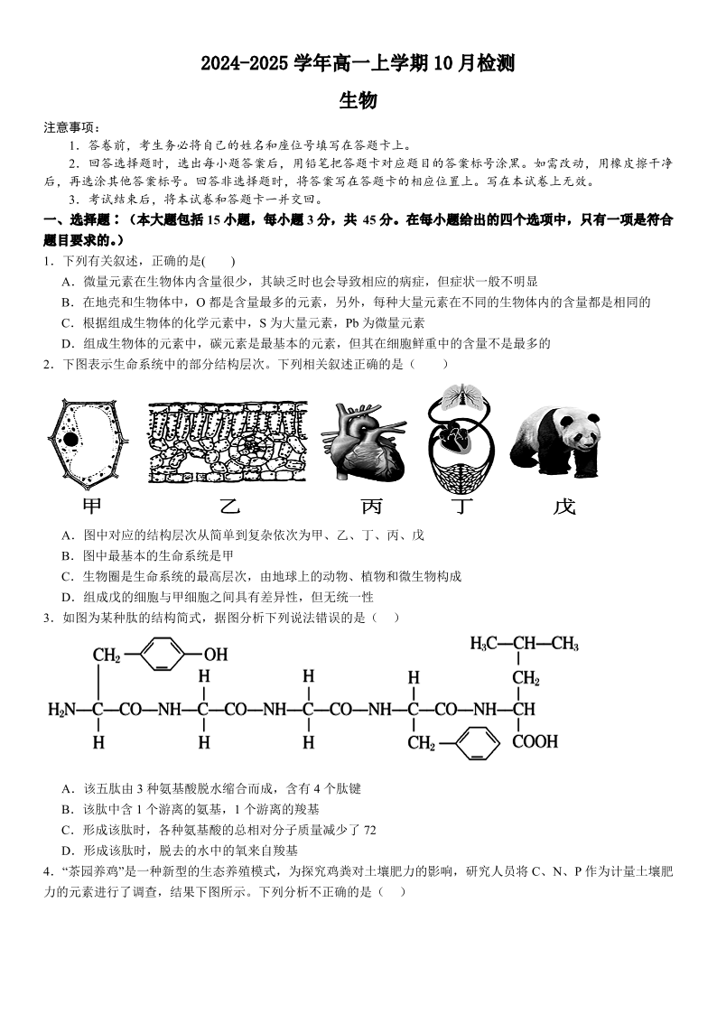 河南省许昌高级中学2024-2025学年高一上学期10月检测 生物