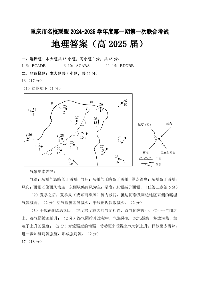 重庆市名校联盟2024-2025学年高三第一期第一次联合考试 地理答案