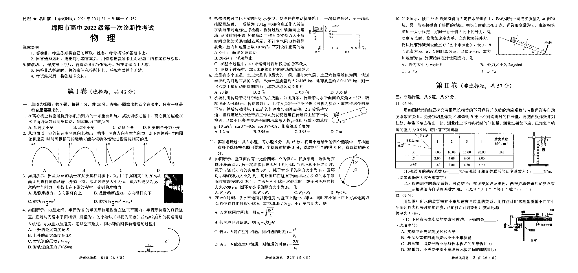 绵阳市高中2022级第一次诊断性考试 物理